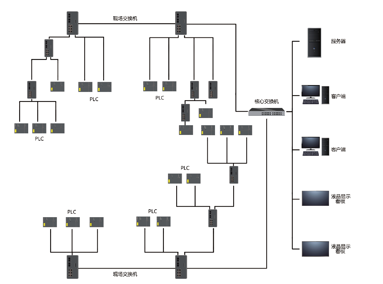 下位机系统主要由PLC、现场总线、网关设备及输入/输出模块组成,可进行现场数据采集和设备控制。