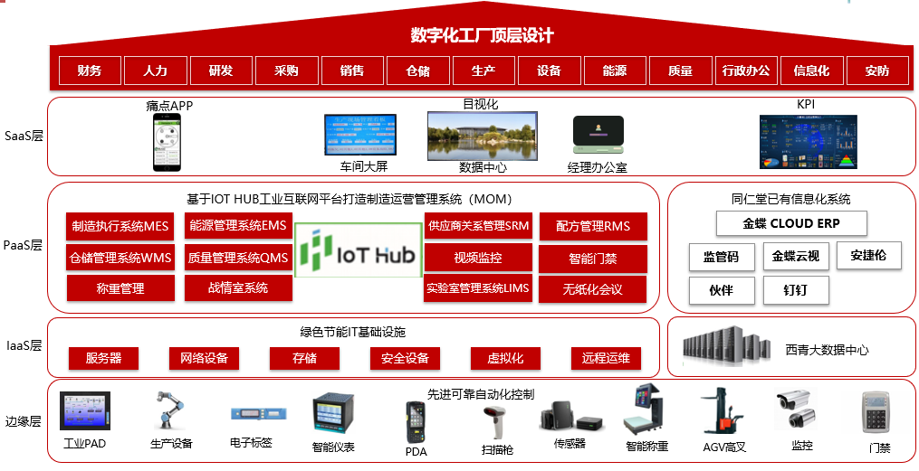 在“互联网+智能制造”的大力推动下,以“云上西青”战略建设为契机,满足该公司精益化智能制造及准时化生产的管理思想,提升公司整体工业和信息化建设标准,根据公司信息化建设的整体规划,更好的满足GMP/GSP要求,需要建立一套全面高效的数字化工厂制造运营管理(以下简称MOM)系统,以实现作业指导信息化、生产过程可视化,仓储管理智能化,包装产线自动化,以及绿色环保工厂的高效生产运作,完成对现场生产的全过程动态跟踪和数字化管理。