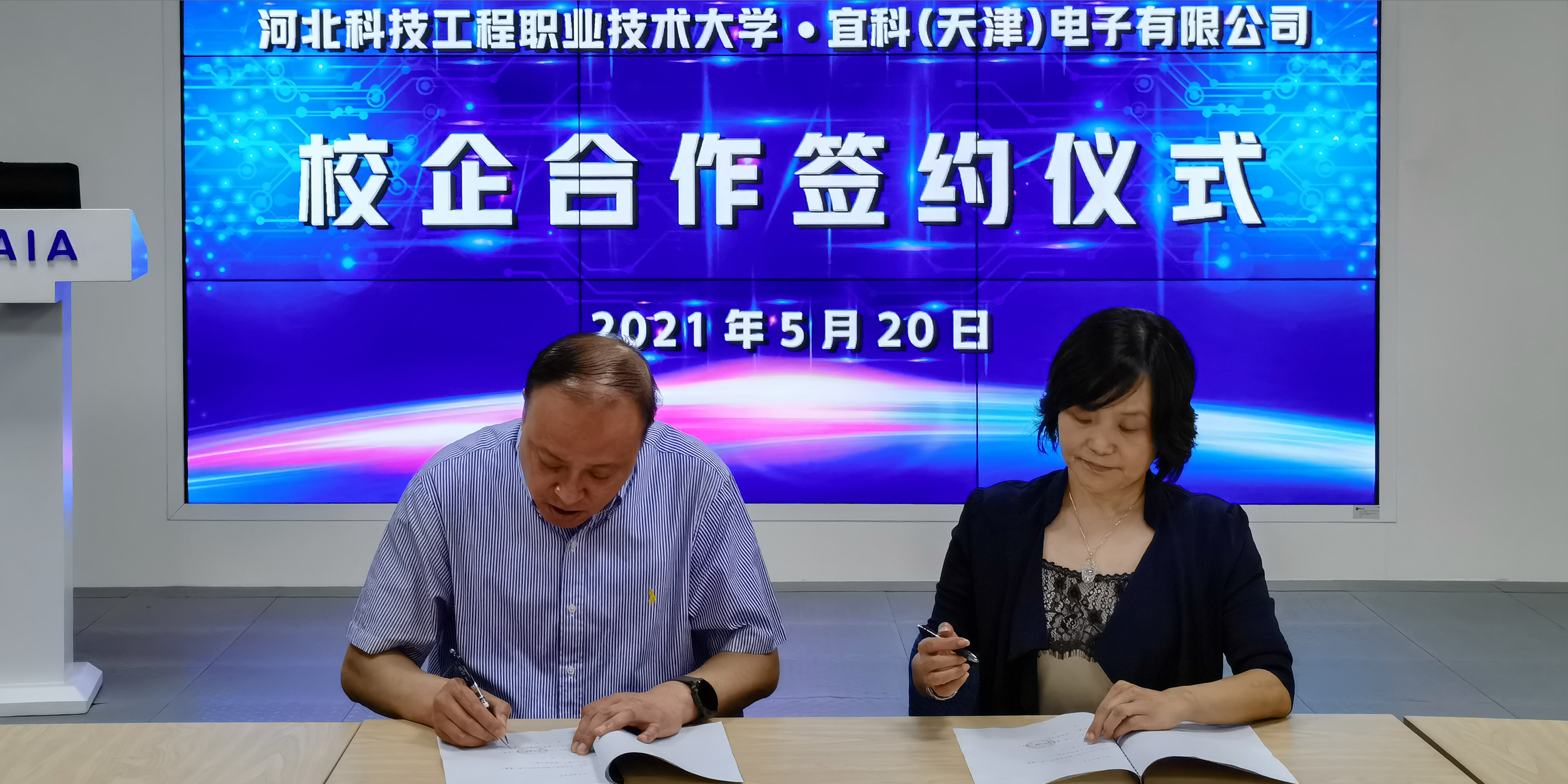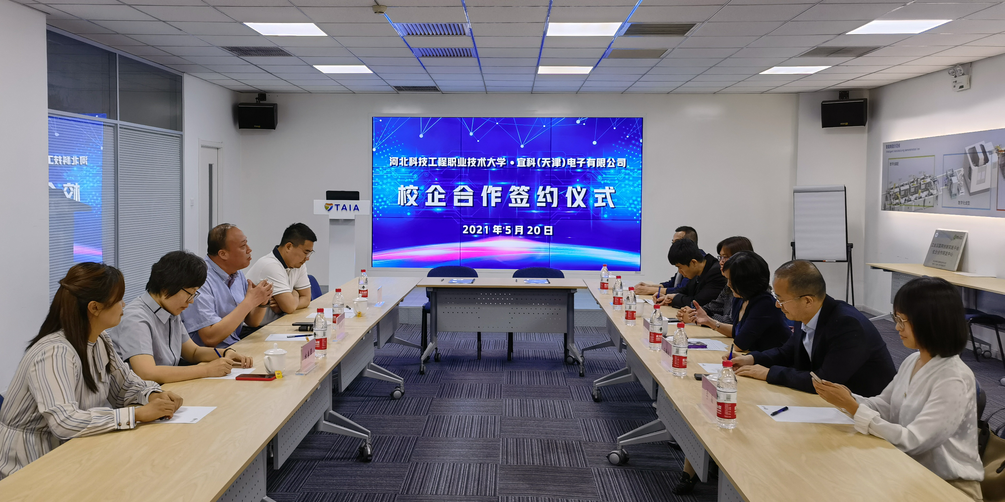 2021年5月20日,宜科与河北科技工程职业技术大学校企合作签约仪式在宜科赛达智能制造综合运营平台隆重举行。河北科技工程职业技术大学副校长刘卫红,科研处处长王傲冰,电气工程系主任陈丽,机器人教研室主任靳晨聪,李晶博士,陈云飞博士以及宜科副总经理张朝辉,教育合作项目总监池健等出席本次签约仪式。