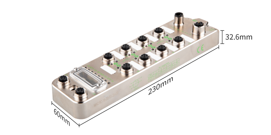 硬核防护,恶劣环境“稳如泰山” 两款模块均采用IP67全密封设计,金属铸造外壳不仅抗振动、抗干扰,还能直接抵御液体、粉尘侵袭。不管是汽车制造中的油污环境,还是食品加工中的水汽场景,或是矿山机械的粉尘工况,它们都能直接安装在现场设备旁,无需额外防护箱,省空间又减成本。 尺寸上更是“小巧能装”, 宽60mm、高230mm、深32.6mm的紧凑身材,哪怕是空间狭窄的设备角落,也能轻松嵌入,完美适配各类工业布局。