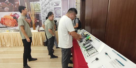 产品展示区,宜科众多创新产品依次陈列,参会嘉宾近距离体验宜科新品的同时,更与技术专家深入探讨产品的参数与应用。
